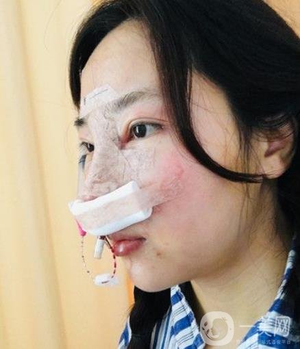 手術的當天是我的同事陪我來的,他一方面是為了照顧,另一方面是為了看整個手術過程和恢復過程,因為他也沒有做過整形,也想嘗試。出了手術室的我整個人迷迷糊糊的眼睛睜不開,這個時候鼻子還插著引流管,我不知道具體是做什么用的,但**的感覺就是各種不舒服,嘴巴很干很想喝水,在術前的4個小時我就被禁食了,此時腹部里一點東西都沒有,很餓很餓,當同事給我打來米粥的時候,我卻疼的有些喝不下去。