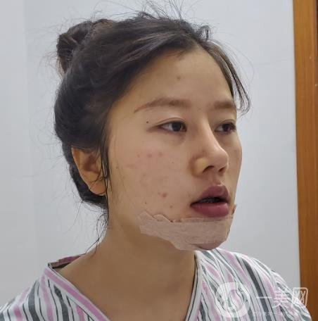下巴還被包裹著的,做了假體墊了下巴這個(gè)手術(shù)之后,嘴巴現(xiàn)在不能張?zhí)螅锌谑窃诳谇粌?nèi)不能吃辣的東西。刷牙都是用漱口水的,這幾天都是吃的流食,現(xiàn)在看不出下巴具體是個(gè)什么形狀,現(xiàn)在也還是在一個(gè)腫脹期的階段。